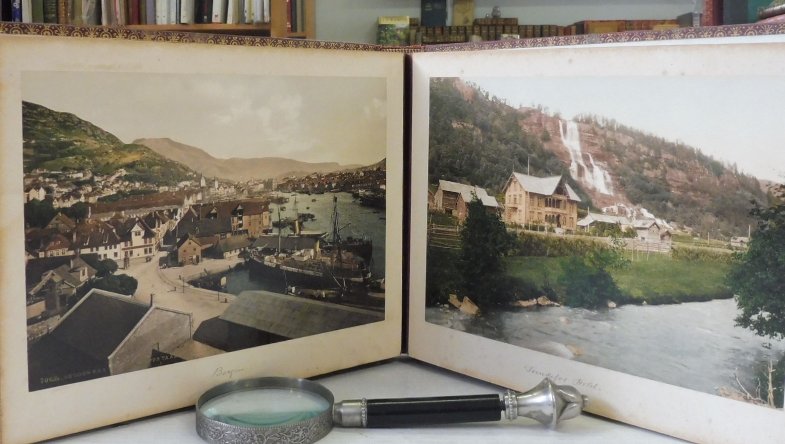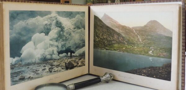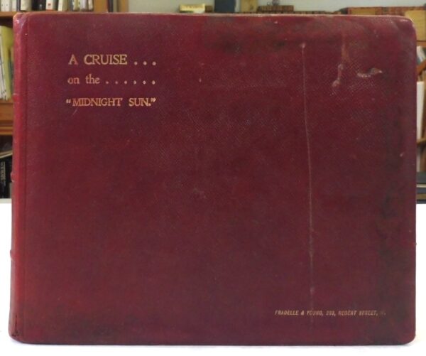 A Cruise on the Midnight Sun Fradelle & Young Fradelle & Young, photographers and lantern slide makers, 283 Regent Street, London, W. Circa 1897–1915. 4to – over 9¾” – 12″ tall. Photo album with 20 colour photographs on cardboard backing. Padded leather covers and gilt title to front. Photos are in fine condition; wear to covers.