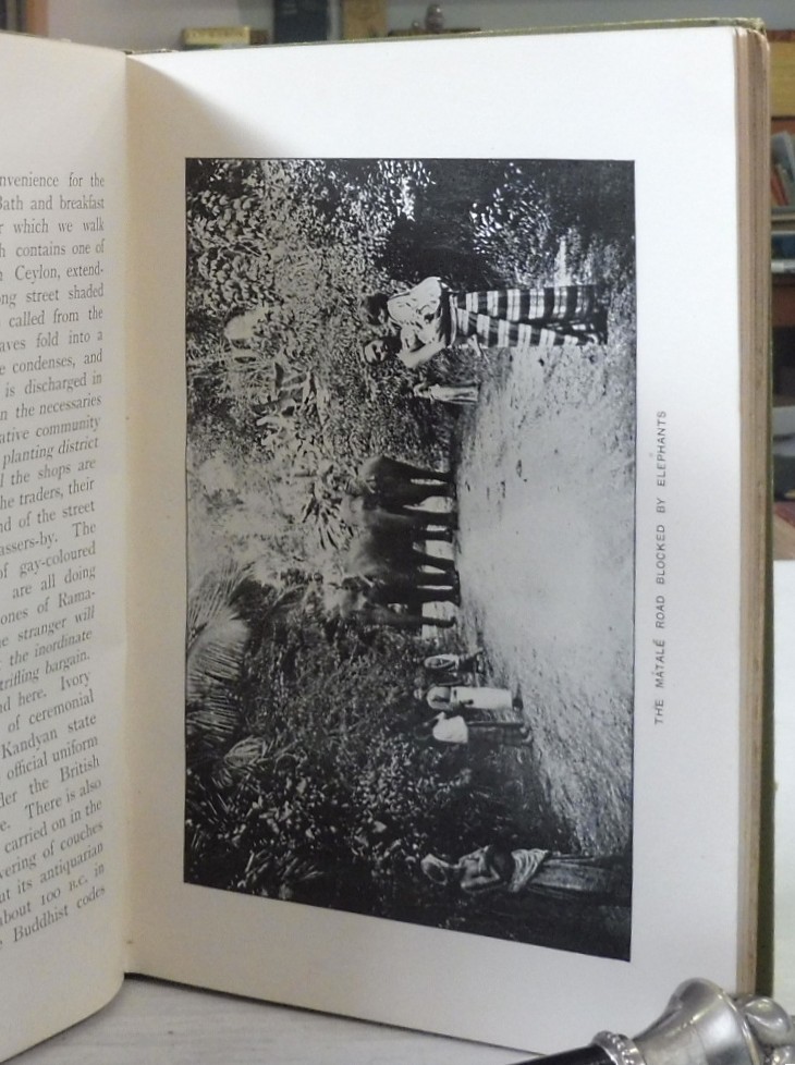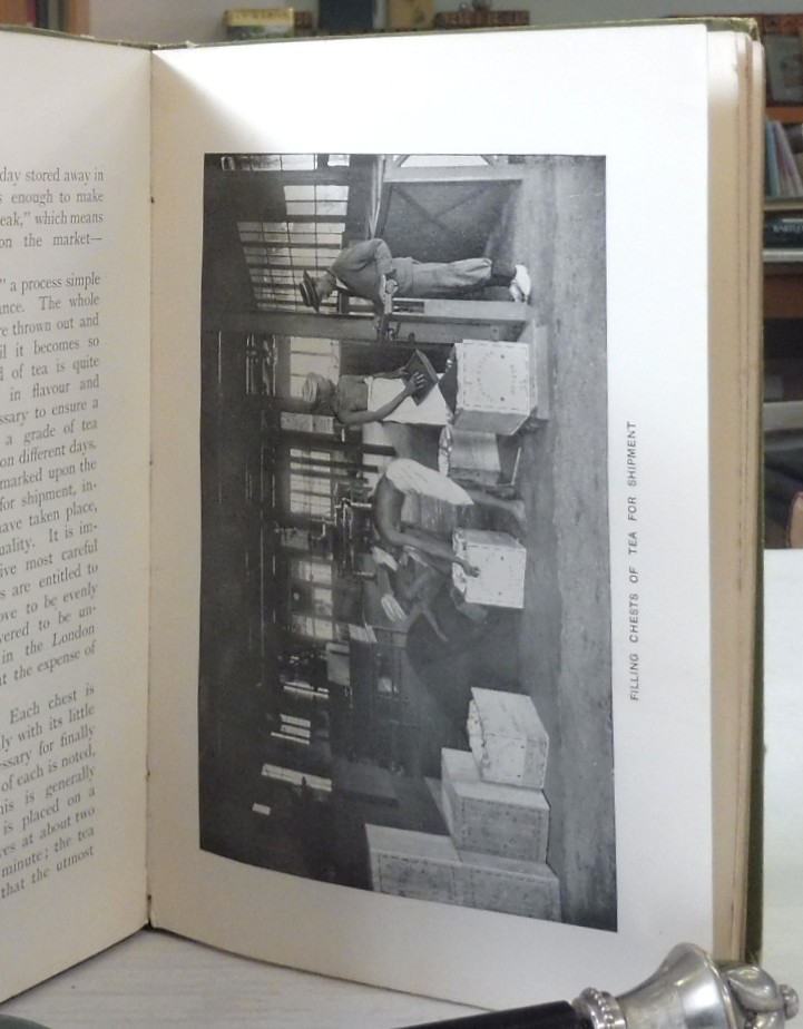 Golden Tips; A Description of Ceylon and its Great Tea Industry, Cave, Henry W. Published by Sampson Low, Marston, 1901. New edition. 8vo up to 9½” tall., 476pp. with 235 black and white illustrations and a map of Ceylon. Green cloth boards with gilt illustration to front, gilt titles front and spine, all edges gilt, dark green endpapers. Small closed tears to margin of map; hinges weakened although all pages holding fast; pages remain white and clean. Bumping and rubbing to edges of boards. In very good condition.