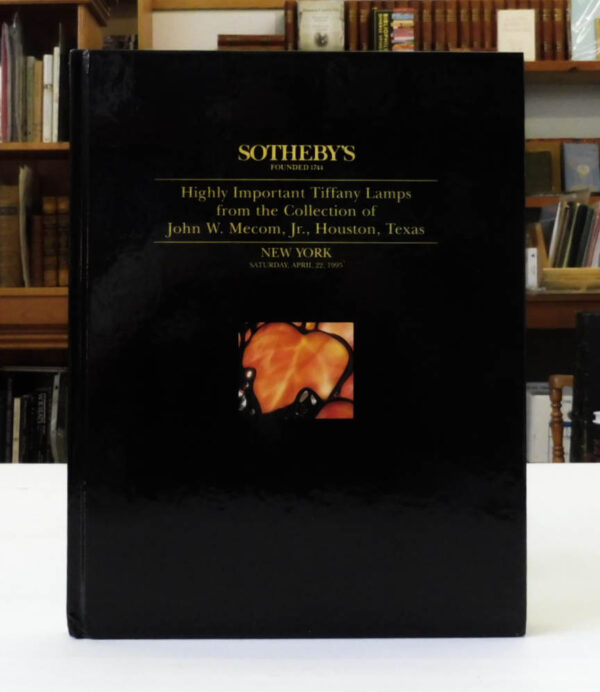 Highly Important Tiffany Lamps from the Collection of John W. Mecom, Jr., Houston, Texas. Published by Sotheby’s, New York,. Size: 8.5 “x 11”. This a sale catalog for an auction held at Sotheby’s New York on April 22, 1995. Sale code: 6691 “MECOM”. 75 lots in the sale are illustrated in color. There is a tiny dent to back board; otherwise book and dust jacket are pristine. 001899 $60