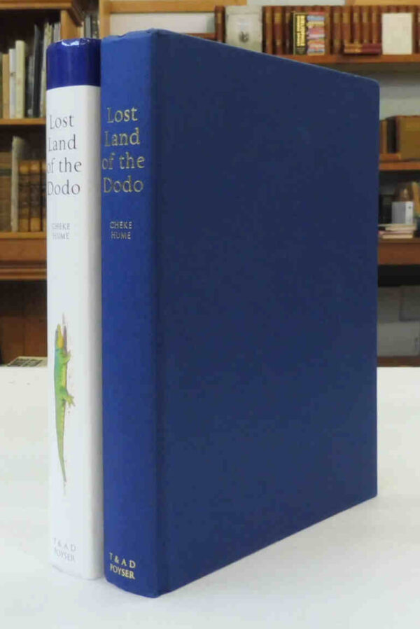 Lost Land of the Dodo: An Ecological History of Mauritius, Reunion and Rodrigues, Cheke, Anthony, Hume, Julian P. Published by Poyser, London, 2008. First Edition. 4to – over 9¾” – 12″ tall; 464pp., colour, black and white illustrations, charts, diagrams, notes, 15 appendices, bibliography and index. Blue cloth boards with gilt titles. In fine, unread condition; dustjacket has a very light top edge ruffle.