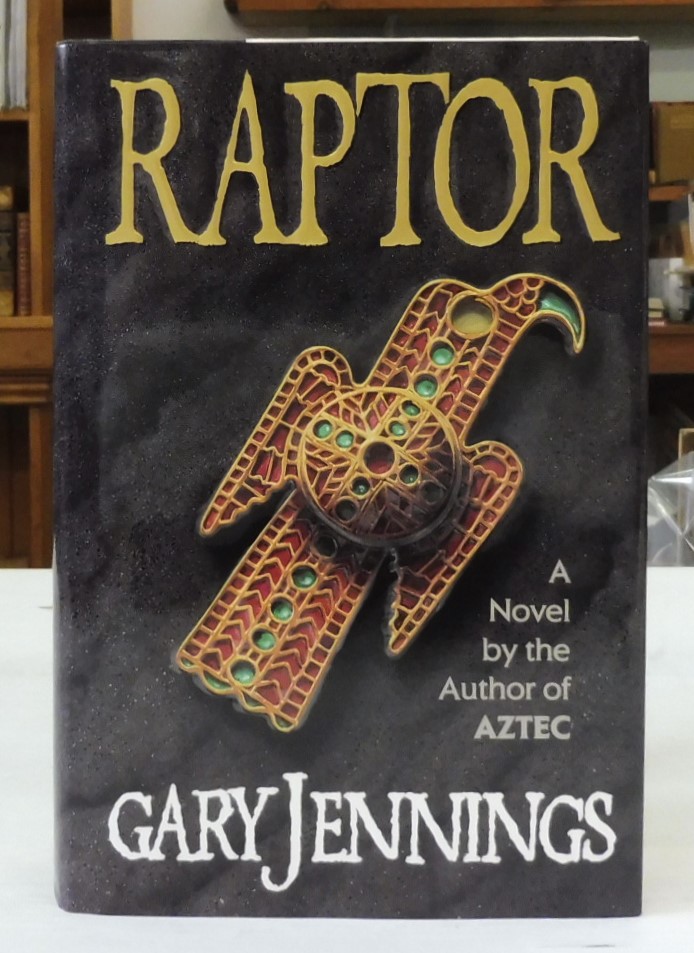 Raptor, Jennings, Gary. Published by Doubleday, New York, 1992. First Edition. 8vo up to 9½” tall., 980pp. Quarter black cloth over ivory boards, gilt spine titles, black endpapers. Boards very lightly splayed and otherwise volume is in fine condition, in fine unclipped jacket.