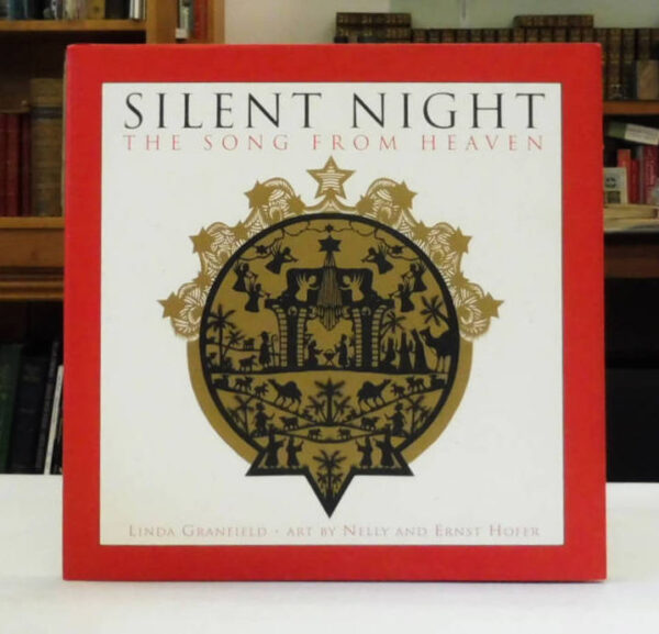 Silent Night: The Song From Heaven, Granfield, Linda; Art by Nelly and Ernst Hofer Linda. Published by Tundra Books, Toronto, 1997. First Edition. 8vo up to 9½” tall. Unpaginated, [24pp.]. Red paper boards with gilt spine titles gilt angel to front board, cream marbled endpapers. Illustrated in black, white and gold “scherenschnitt” (cut paper art), popular at the time the hymn Silent Night was written. Both volume and unclipped jacket are in fine, unread, unmarked condition.