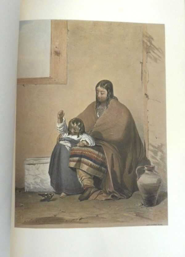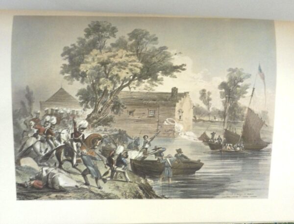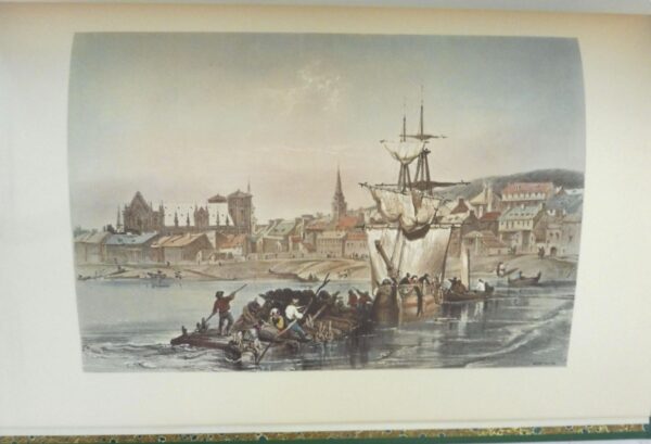 Smyth was a British artist and traveler. When he was thirty, Smyth was hired to be the drawing-master of the three daughters of the Earl of Durham, the Governor General of British North America, who is this book’s dedicatee. While the Earl of Durham was on his mission to the Canadas, likely from May to November of 1838, Smyth drew his impressions of nineteenth-century Canadian life and its landscape. The 23 plates after his sketches depict First Nations peoples such as the Huron who lived on the St. Lawrence River; scenes of hunting buffalo and moose; the ports of Montreal and Toronto; the American fort on the Niagara; war scenes; waterfalls; city-views of Quebec; and a scene of Native blanket-trading.