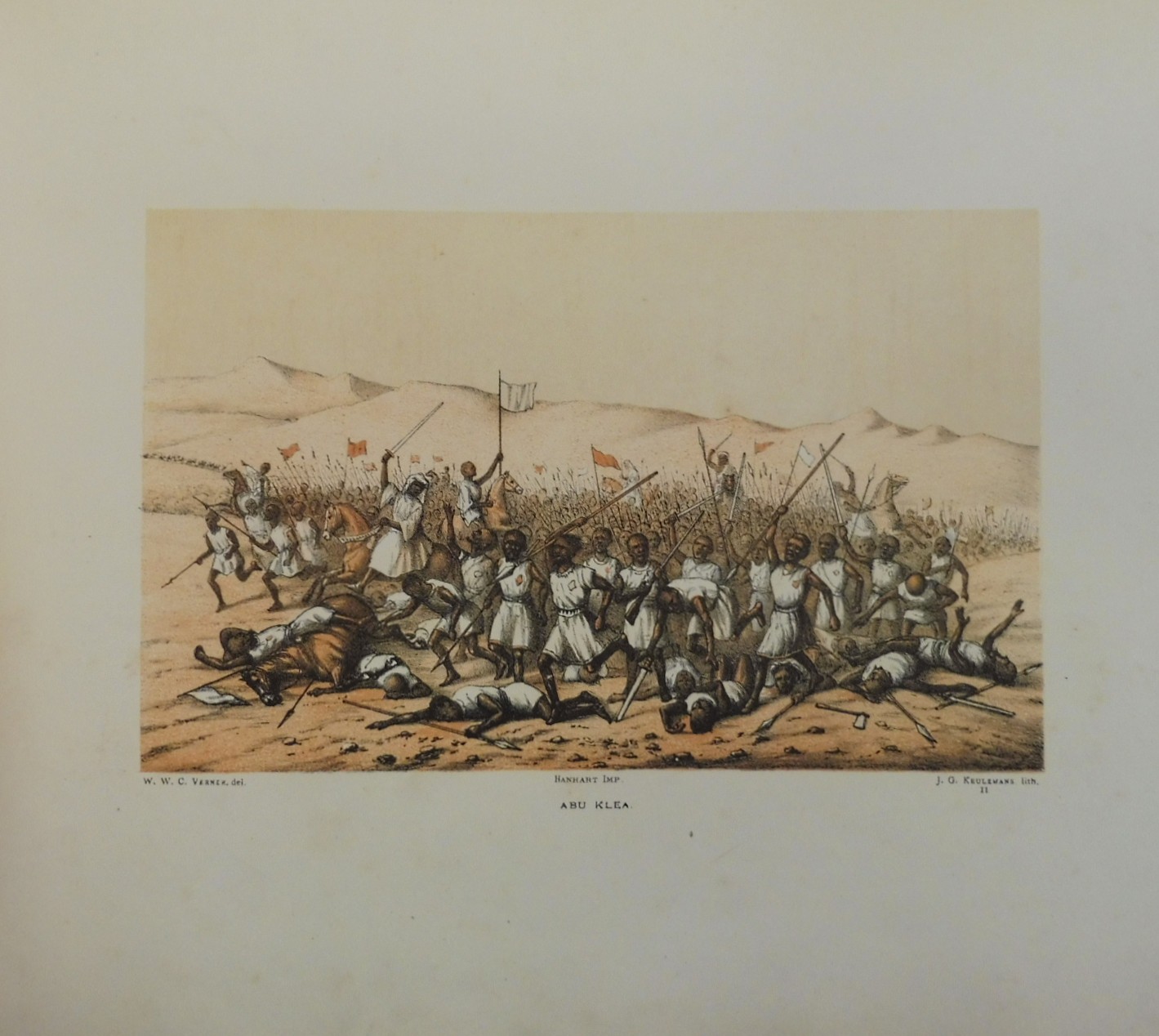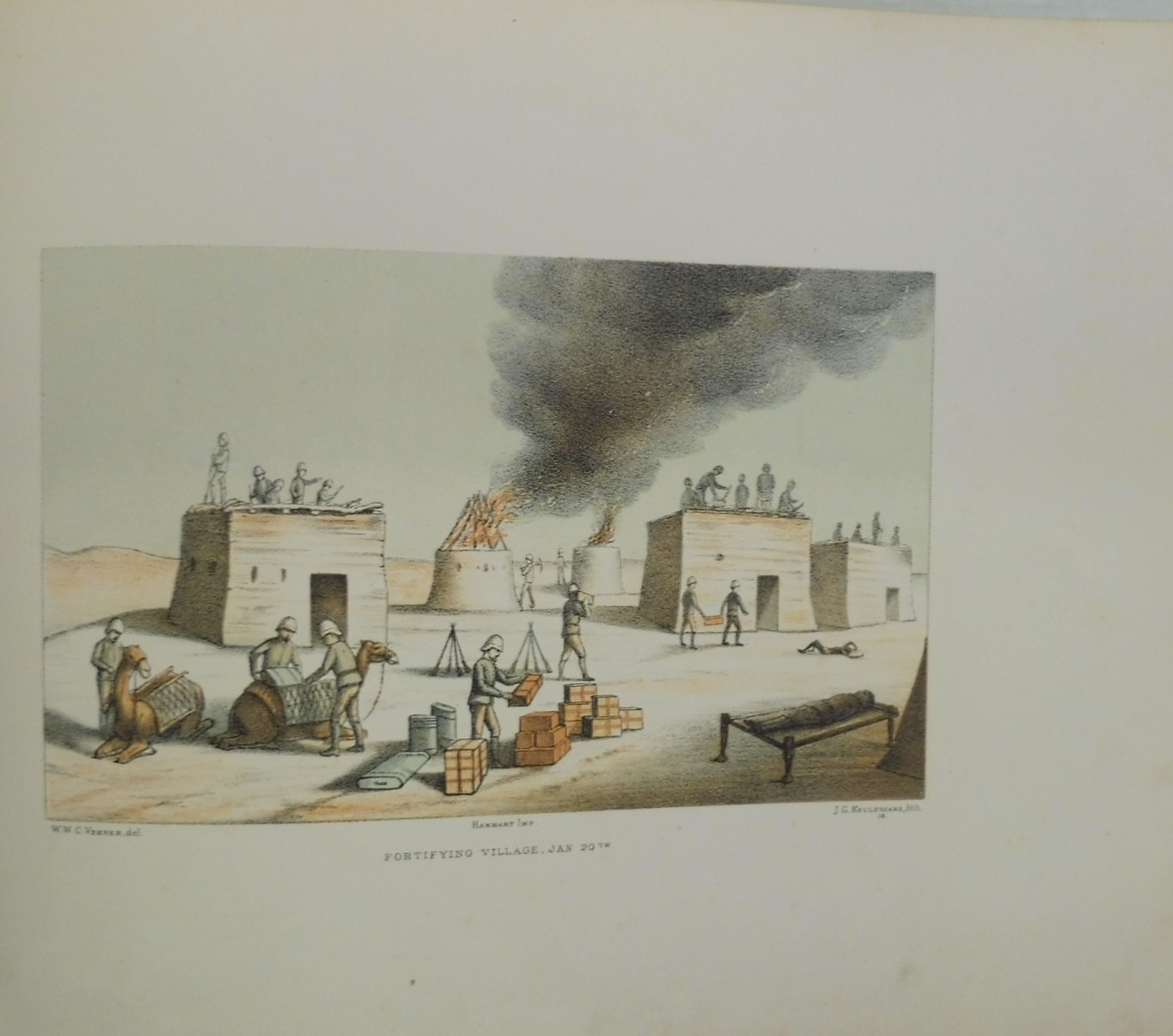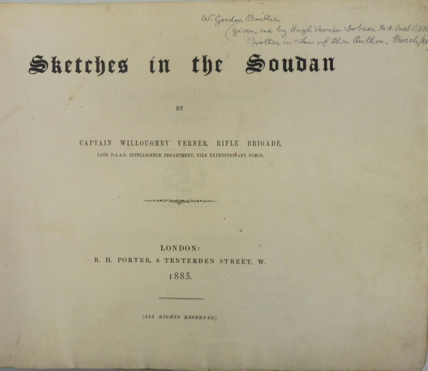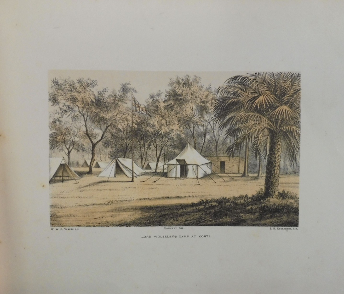 Willoughby Verner, a British military officer, was part of the military expedition (1884-1885) to the relief of Khartoum. En route under difficult circumstances, Verner made drawings in his sketch book, which were later made into color lithographs, thirty-nine of which are in this book. Some are serene desert landscape; others are of warfare.