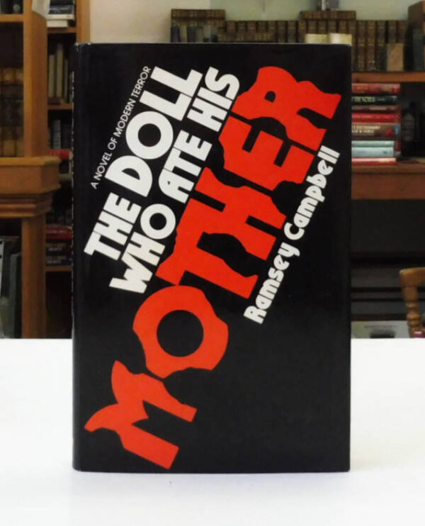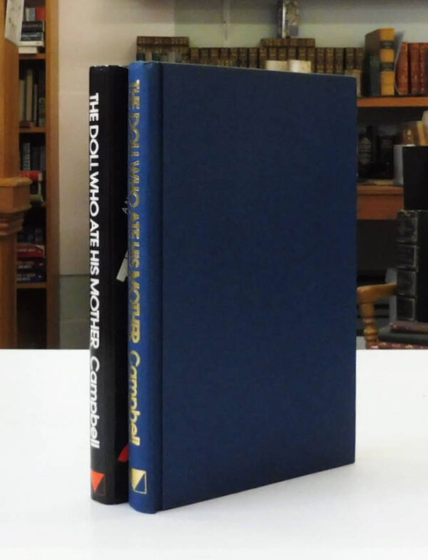 The Doll Who Ate His Mother, Campbell, Ramsey. Published by Millington Books, London, 1976. First UK Edition. 8vo up to 9½” tall. 209pp. Blue cloth boards with gilt titles. Tiny remainder dot to outer bottom edge; small dust mark outer edge and otherwise volume is in fine condition. Unclipped jacket has light top edge ruffling and is otherwise, fine.