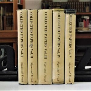 The Life and Work of Sigmund Freud, Ernest Jones. Published by Basic Books, New York, 1961. First Edition, later printing. Three volumes complete. Volume 1: The Formative Years and the Great Discoveries 1856-1900; Volume 2: Years of Maturity 1800-1919; Volume 3: The Last Phase 1919-1939. 8vo up to 9½” tall., 428pp., 512pp., 537pp. with black and white photographs, tables, appendices, reference notes, index. Blue cloth boards with gilt spine titles and blindstamped titles, top edge pink, grey endpapers. Name to free endpapers and otherwise contents are clean and free of markings, tears or folds; unclipped dustjackets have a few closed tears and tiny chips. An overall very good set.