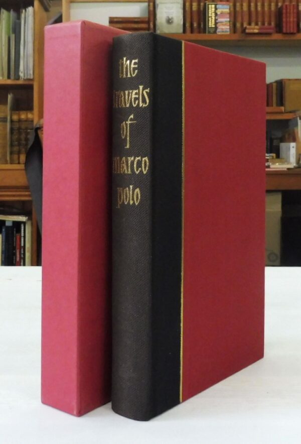 The Travels of Marco Polo, Translated and Introduced by Ronald Latham. Published by The Folio Society, 1992. 4to – over 9¾” – 12″ tall; 310pp., maps, index, genealogical table of the Mongol Imperial House, illustrations with colour plates. Quarter black cloth over red cloth boards, gilt spine titles, mapped endpapers. Housed in a red slipcase. In fine, unread condition.