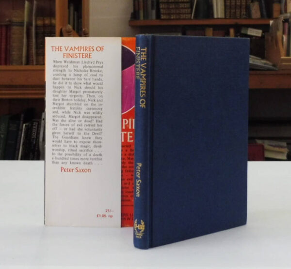 The Vampires of Finistere, Peter Saxon (Rex Dolphin) Published by Howard Baker, London, 1970. First Edition. Small 8vo up to 9½” tall. Dark blue boards with gilt titles. Volume is in unread condition; pages remain bright and white. Unclipped jacket has some rubbing and is otherwise in fine condition. An exceedingly rare hardcover copy in highly collectible condition.