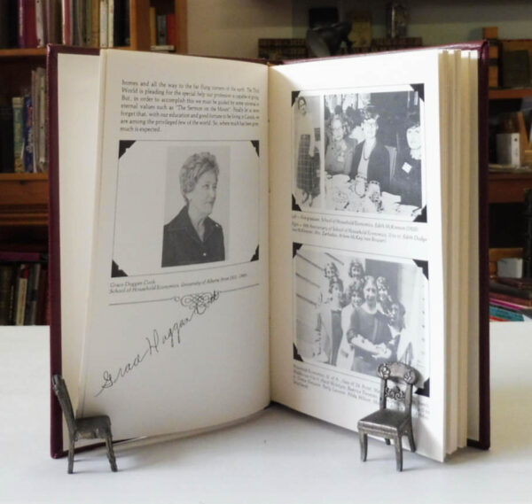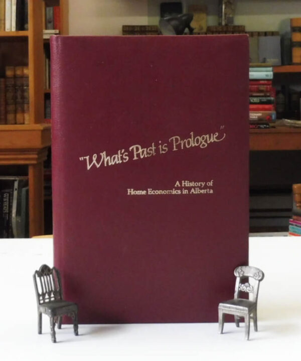 What’s Past is Prologue: A History of Home Economics in Alberta, Bannerman, Norma; preface by Grace Duggan Cook, President of the A.H.E.A. Published by Alberta Home Economics Association, Calgary, Alberta, 1981. Signed, Limited Edition of 50, this being number 34. Original receipt for book laid in. Signed by Grace Duggan below her photograph. Crimson leatherette boards with gilt titles front and spine. 8vo up to 9½” tall., 167pp.; illustrated. Contents are in fine condition; front board has a tiny fine ink line; very light shelf wear. Duggan Cook served on the faculty of Household Sciences, University of Alberta.